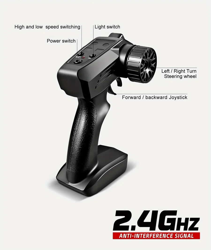 A: Yesโyour package includes a dedicated wireless controller with steering and throttle control. You can control acceleration, reverse, and drift angles easily.